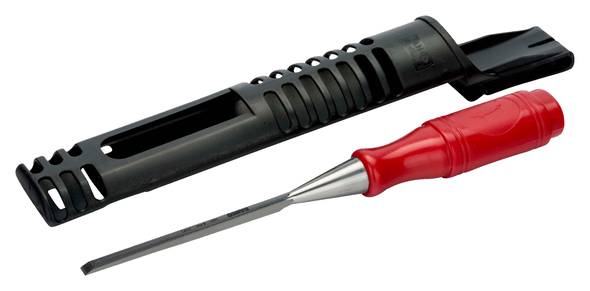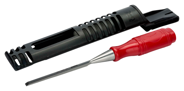 Huggjern polypropylenhåndtak - trebearbeiding og benkarbeid Varenummer: 1031 WEB Håndtak med svært slitestrek, rød plast Presisjonsslipt blad for maksimal skarphet Polert blad som beskytter mot rust Herdet høykvalitets stål for høy holdbarhet med 4 mm til 40 mm størrelser Leveres med slire som beskytter bladet Standarder: ISO 2729 Behagelig rødt håndtak av plastkompositt passer behagelig i hånden Bladbeskytter beskytter bladeggene når de ikke er i bruk