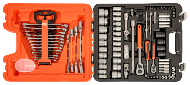 13 stk. kombinasjonsnøkler: 7, 8, 9, 10, 11, 12, 13, 14, 15, 16, 17, 18 og 19 mm i en praktisk, uttakbar holder