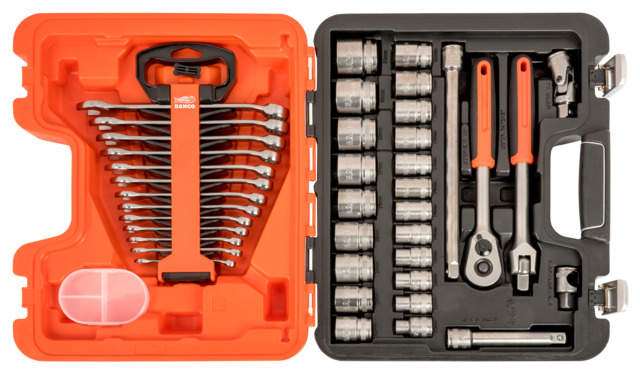 13 stk. kombinasjonsnøkler 7, 8, 9, 10, 11, 12, 13, 14, 15, 16, 17, 18 og 19 mm, i en praktisk uttakbar holder