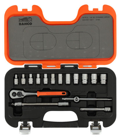 Én 1/4" skralle med hurtigutløser, 60 tenner / 6° arbeidsvinkel