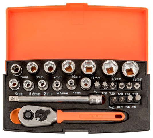1 stk. 1/4" skralle, 125 mm lang, hurtigutløser, 60 tenner / 6° arbeidsvinkel