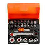Inneholder 26 deler: 18 bits + 5 piper + 1 bitsskralle + 1 overgang + 1 bitsholder