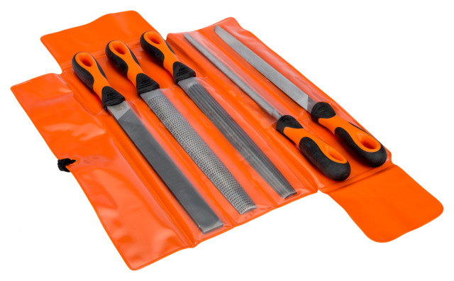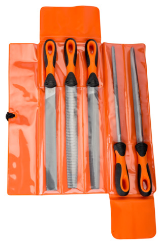 Inneholder én av hver: Flat, trekant, firkant, rund, halvrund fil og halvrund rasp