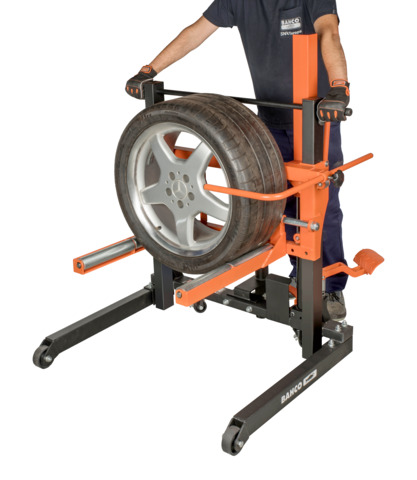 - Bakhjulene er utstyrt med brems til å låse hjulløfteren og unngå bevegelse under dekkskifte