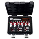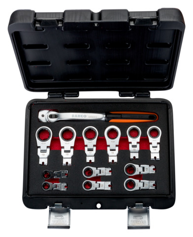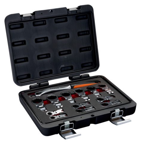 Skrallenøkkelen er forsynt med to låsbare ledd som kan vinkles opp til 360°