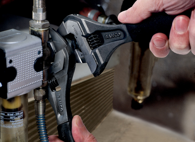 Ekstra stor kjeftåpning med kortere skaft enn standardnøkkel muliggjør arbeid på trange steder