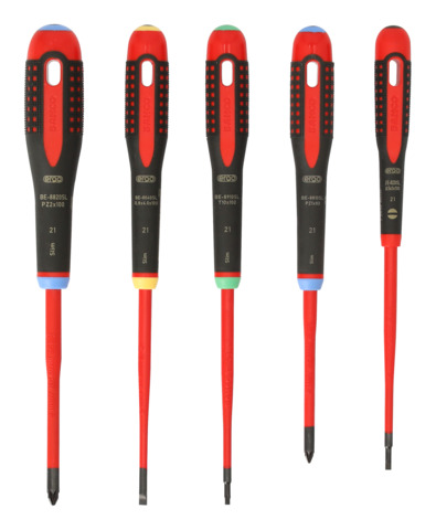 Skrutrekkersett med slank klinge (redusert klingediameter), 5 deler for spor-/Pozidriv- og TORX®--skruer
