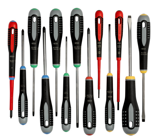 Inneholder 13 skrutrekkere for spor/Phillips/Pozidriv/TORX®-skruer