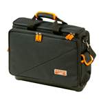 Ekstremt kraftig verkøtybag i tekstil med stort polstret midtrom for laptop og lignende ømfintlig utstyr