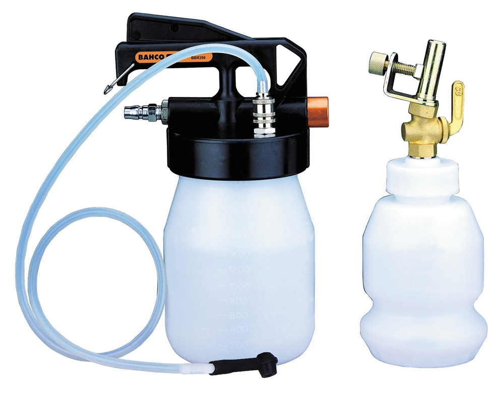 Bahco bremselufter med fyllekanne Varenummer: BBR 350 Pris og beholdning: Logg inn eller Bli bedriftskunde for tilgang til Bedriftskatalogen Spesifikasjoner Rask og effektiv bremselufter. 1,5 L PU (Polyurethan) beholder, 0,6 L PU påfyllningsbeholder. Hurtiglås. Universalgumminippel som passer alle bremsesystem. 2 m lufteslange.