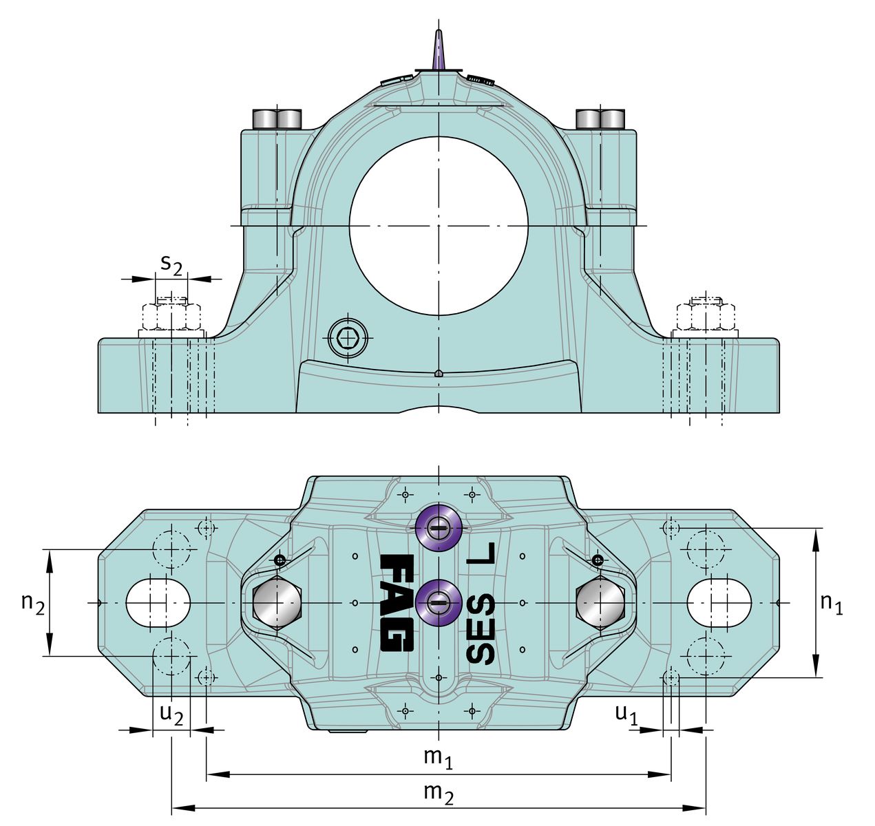 Split plummer block housing for various bearing designs. The SNV series will be replaced by the new SES series in 2022.
