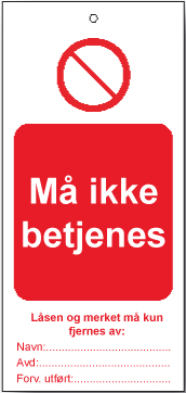 Tag "må ikke betjenes" 75x160mm 10pk Varenummer: LOTO 451759 Dette produktet er kun tilgjengelig for våre registrerte bedriftskunder (kontokunder). Du kan søke om dette her: registrer ny kunde Beregn frakt Ditt postnummer Sjekk fraktpris Regner ut... Brukes av Tilbehør til Våre produkter Master Lock Safety Solutions Prosess LOTO 6 (24-deler) i koffert LOTO 10 PRO 06 14 225,- Se mer Kjøp