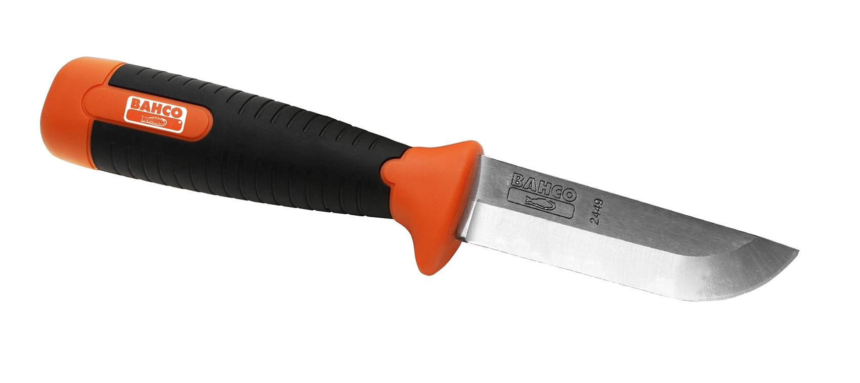 Bahco huggjernkniv Varenummer: 2449 Tidligere eller alternative varenumre: 2449 Pris og beholdning: Logg inn eller Bli bedriftskunde for tilgang til Bedriftskatalogen Spesifikasjoner Tekniske data Robust slirekniv for snekker og grovarbeide Herdet klinge 58-61 HRC som holder seg skarp lenge Skaft av slagfast PPE-plast med splintbeskyttelse Kan med fordel brukes til f.eks spjelking osv 4 mm tykk klinge som tåler røff behandling 100 mm lang klinge Enhet Verdi A mm 231 B mm 100 C mm 25 D mm 4 Vekt g 200