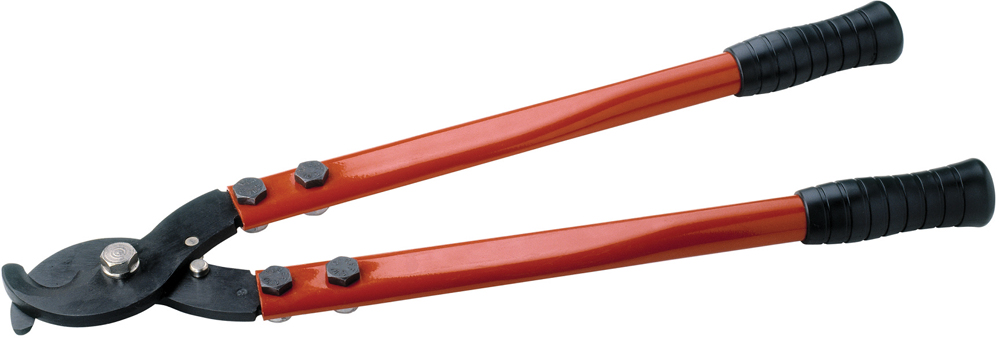 Kraftig saks for klipping av aluminiums- og kopperkabler med eller uten bæreline med maks. diameter på 30 mm kabel og 6 mm bæreline.