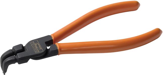 Bahco seegerringstang 90° innvendig, serie 2890 Varenummer: 2890 WEB Sporringstang uten returfjær til innvendige sporringer. DIN 5256D Utførelse: Svartoksidert, rustbeskyttet. Materiale: KROM-VANADIUM. PVC-belagte håndtak. Med smidde, 90° spisser.