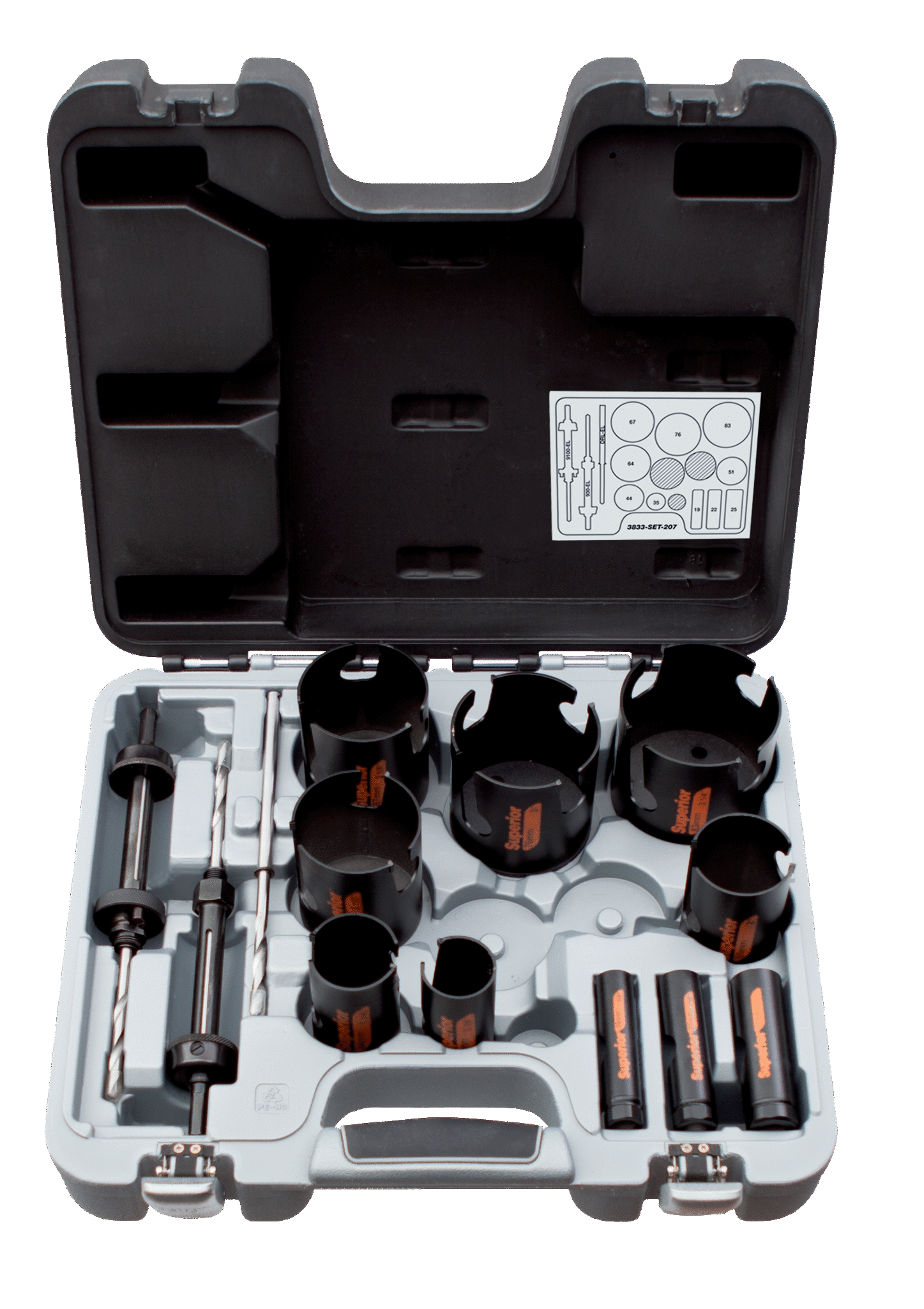Bahco hullsagsett HM Multi Construct 19-83 mm - 13-deler Varenummer: 3833 SET 207 Superior™ multikonstruksjons hullsagsett 19-83 mm - 13 deler 5 688,- (4 550,- eks.mva.) pr. sett. Bestillingsvare Antall produkter Kjøp Beregn frakt Ditt postnummer Sjekk fraktpris Regner ut... Spesifikasjoner Inneholder de mest brukte størrelsene for snekkere, rørleggere og elektrikere Superior hullsager skjærer gjennom tre, tre med spiker, tegl, MDF, gips, finér, plast osv. Hele 71 mm (2 3/4") skjæredybde Inkluderer også tidsbesparende holdere med utstøter som gjør det enkelt å fjerne kjernen uten bruk av verktøy Holderne krever en boremaskin med 10 mm chuck Laget for profesjonell bruk Hullsager med tenner i premium hårdmetall og dype sponrom for effektiv fjerning av spon og overlegen skjæreegenskap Hullsager med standard fester som passer til et stort antall holdere Høy kvalitet i form av presisjon, holdbarhet og allsidighet Uansett hva du skal kutte, har vi hullsagene og holderne som gjør jobben, gang på gang Alt er konstruert for å forbedre produktiviteten og håndverket – fra utformingen av skjæreeggene til teknologien som er brukt til å produsere hullsagene