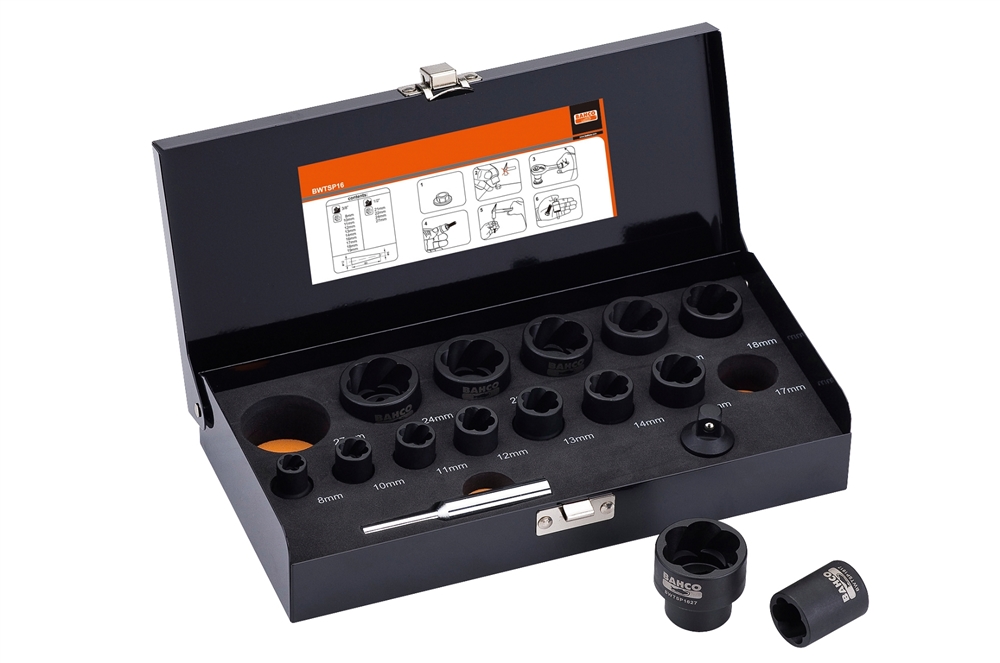 Tilbud Bahco 3/8" og 1/2" mutteravtrekkersett 8-27mm 16-deler Varenummer: BWTSP 16 Tidligere eller alternative varenumre: BWTSP16 Sett med twistpiper for fjerning av ødelagte muttere og skruer, spesielt for låsemuttere Den spesielle profilen på innsiden gir pipen et godt grep for løsning der hvor standard piper og nøkler ikke holder Innfestning: 3/8" eller 1/2", avhengig av profilens dimensjon Svartfosfatert overflate Av høykvalitets stål Hardhet: 45-48 HRC Ikke egnet for maskinbruk 14 tilgjengelige dimensjoner. 3/8" innfestning: 8, 10, 11, 12, 13, 14, 16, 17, 18 og 19 mm. 1/2" innfestning: 21, 22, 24 og 27 mm Settet inneholder også en adapter: 1/2" innvendig til 3/8" utvendig og en dor Piper kan også kjøpes separat 2 062,- 4 075,- (1 650,- eks.mva.) pr. sett. Bestillingsvare Antall produkter Kjøp Beregn frakt Ditt postnummer Sjekk fraktpris Regner ut... Spesifikasjoner Tekniske data Mutteravtrekkersett-Kraftipiper For fjerning av ødelagte muttere og skruer-spesielt for låsemuttere. Den beste problemløseren av alle Innsidens spesialformede profil gir et sikkert grep der vanlige piper ikke går an å få på BWTSP16: 16 deler 3/8": 8,10,11,12,13,14,16,17,18,19 mm; 1/2": 21,22,24,27 mm; Overgang: 1/2" innvendig til 3/8" utvendig 1 stk dor Ikke for maskin Enhet Verdi Dim. 50x245x120 mm Vekt 1,75 kg