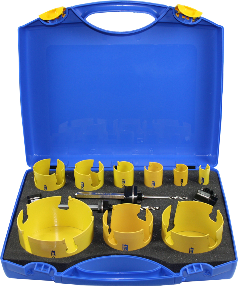 Inneholder hullsager på 19, 25, 32, 35, 51, 54, 76, 92 og 125 mm, samt 2 stk holdere.