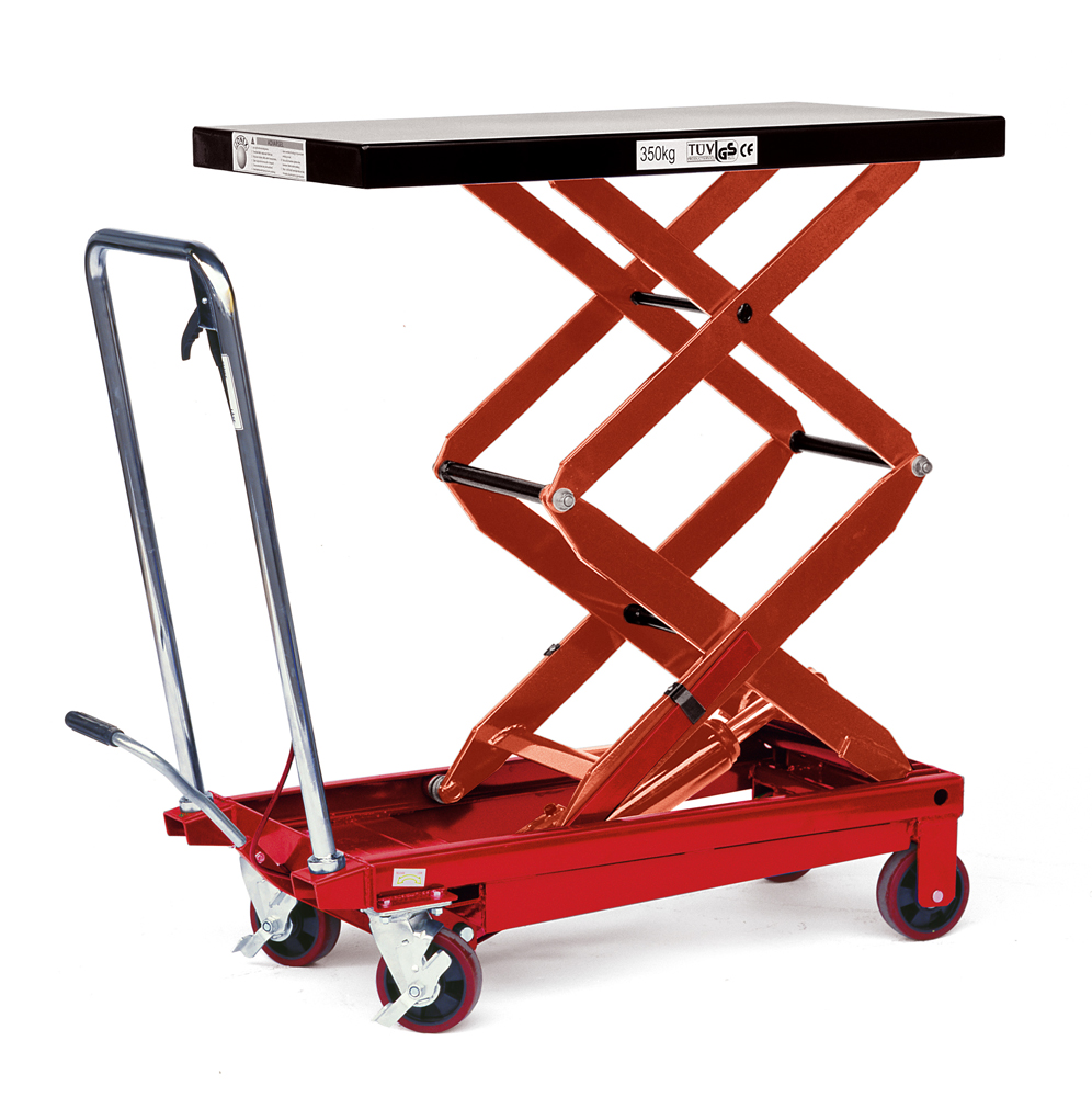 Jonex 45 løftebord 350kg Varenummer: JON 53005 Tidligere eller alternative varenumre: 24804833 53005 7070458530056 Arbeidsbord godt egnet for interntransport, flytting og løfting av gods. Kraftig konstruksjon beregnet for daglig drift og lang levetid. Høyderegulering med fotpumpe. Utstyrt med skyvehåndtak, hjulbeskyttere og låsbare hjul. Pris og beholdning: Logg inn eller Bli bedriftskunde for tilgang til Bedriftskatalogen Tekniske data Enhet Verdi Løftehøyde 350-1300 mm Lasteplate 910x500 mm Kapasit 350 kg Saksetype Hydraulisk dobbellsaks Vekt 120 kg Lengde 110 cm Bredde 55 cm Høyde 44 cm