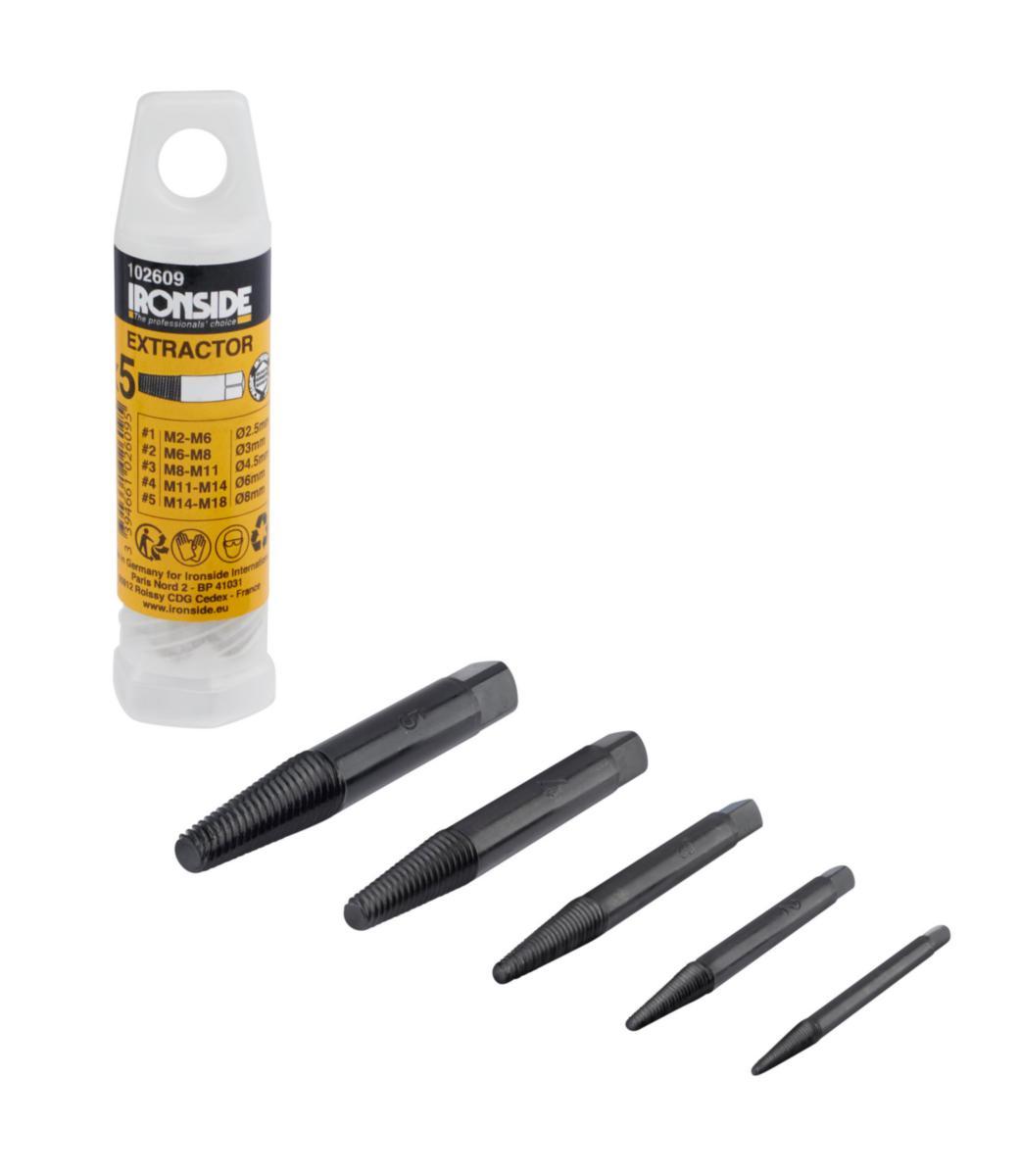Skrueuttrekkersett str. 1-6 Varenummer: SKR 1 6 Sett med skrueuttrekkere med venstrespiral. Leveres i rund plastboks med oppheng. Antall deler: 6 Hulldiameter: 2.5-11.0 mm 490,- Pris eks. mva. pr. sett. Lagerbeholdning: 2 Antall produkter Kjøp Beregn frakt Ditt postnummer Sjekk fraktpris Regner ut... Tekniske data Enhet Verdi Til hulldiameter 2,5 - 11mm Antall uttrekkere 6