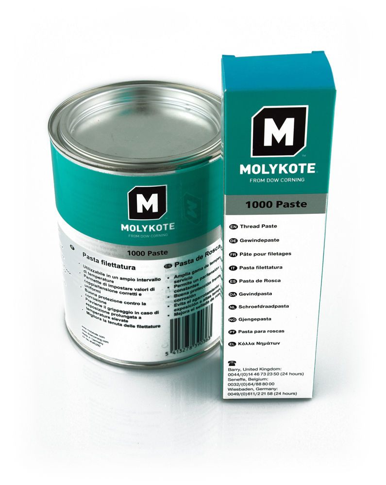Molykote Pasta 1000. Jevner ut friksjon i gjengeflankene slik at bedre kontroll over forspenningen av boltene blir mulig. For bolter og gjengende forbindelser, for eksempel. Turbiner, motorer, eksosrør og oljebrennere. Fri for bly og nikkel, inneholder kobber. Ikke anbefalt brukt til rustfrie deler.