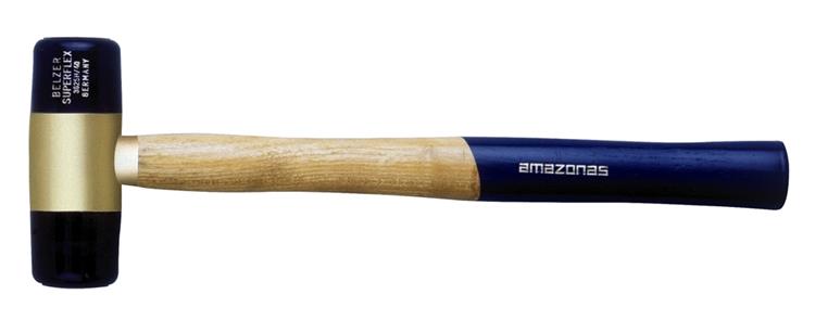 Kunststoffhammer med skaft av edeltre og blå kunststoffbaner av Cellidor montert på støtabsorberende lettmetallhus.