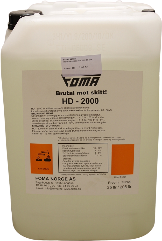 FOMA Delevaskemiddel er et sterkt alkalisk rengjøringsmiddel for