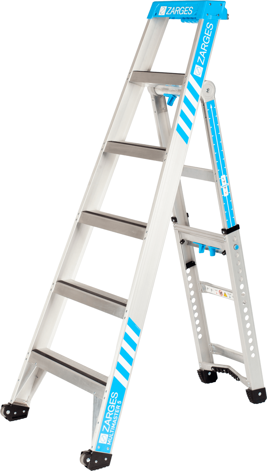 Med låsbart ledd kan stigen låses i posisjon som trappestige, vippes opp til 90 grader stige mot vegg eller helt ut til anliggende stige. Baksiden er telskopisk, slik at man kan benytte den i trapp eller andre plasser med ulike nivåer som trappestige. Avstand fra vegg kan dermed også justeres i 90 grader-posisjon, og lengden på stigen kan justeres når den er utfelt som anliggende. Sammenfelt fungerer den også som en kortere anliggende stige. Toppen av stigen er designet slik at den trygt kan lenes mot flater, hjørner, stolper og veggstendere. Utstyrt med hjul og bærehåndtak i toppen, slik at den er enkel å dra med seg.