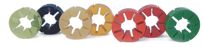 Samiflex elastiska kopplingsband är tillverkade i tre olika kvalitéer och fem olika hårdheter beroende av applikation.